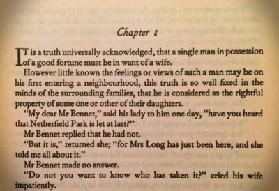 "It is a truth universally acknowledged, that a single man in possession of a good fortune must be in want of a wife."