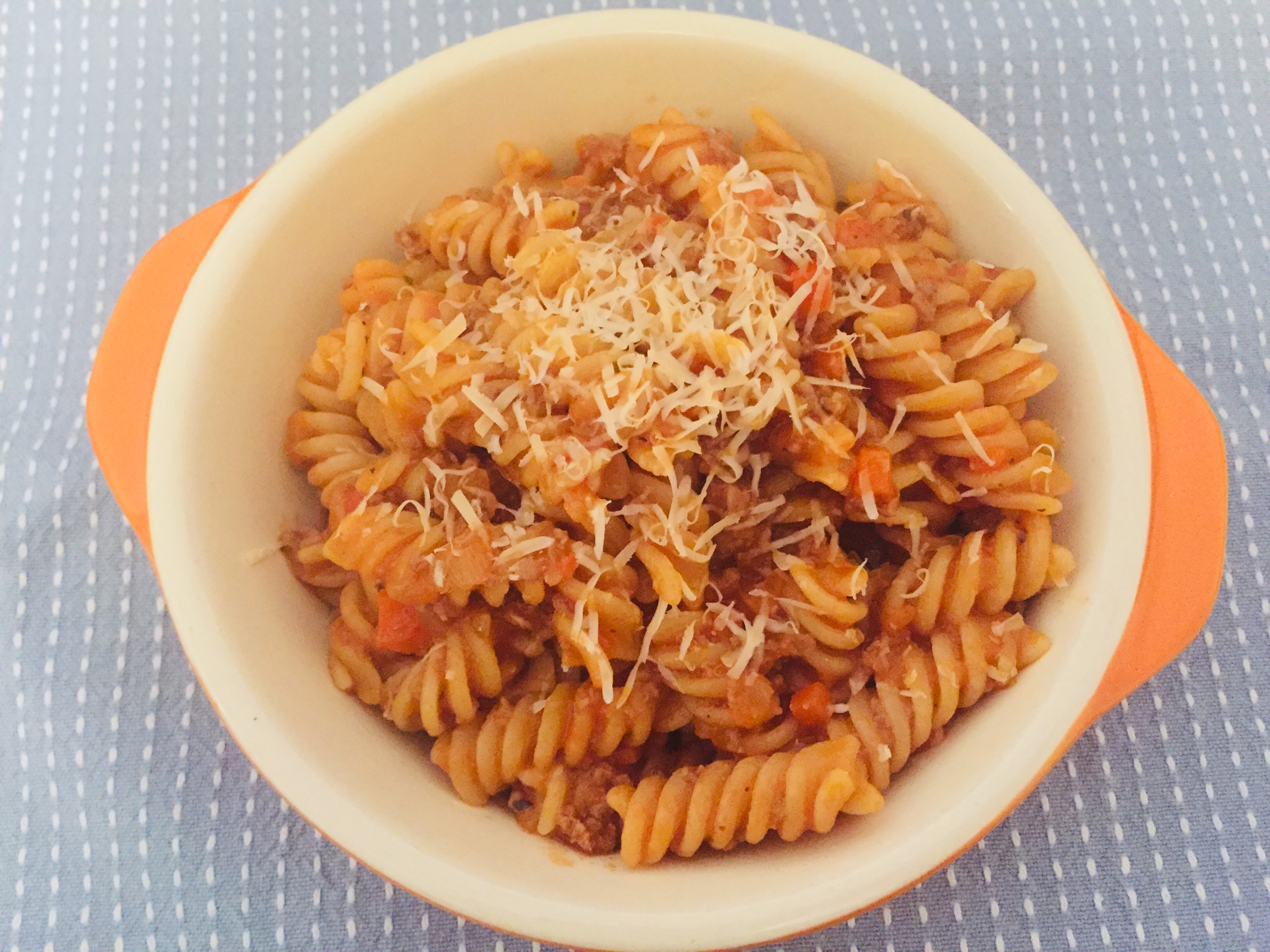 재료 준비: 토마토소스, 생 토마토, 양파, 당근, 파스타, 다진 소고기 500g