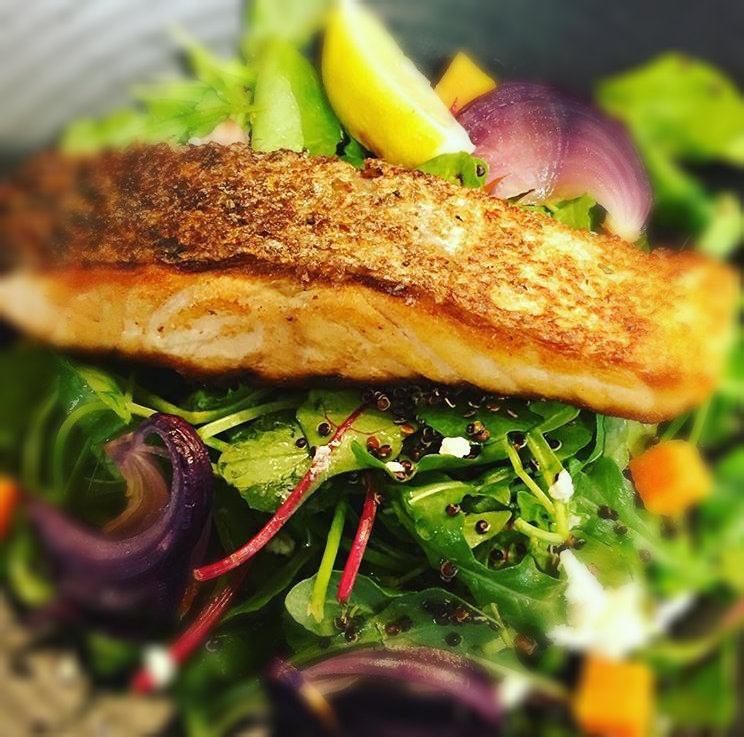 위의 사진은 제 요리가 아닙니다. 종종 브런치를 먹으러 가는 곳의 저의 최애 요리인 연어 샐러드입니다.