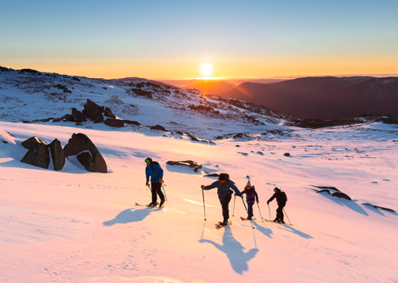Snowy Mountains Backcountry : 알파인 투어링 스키, 등산용 스킨, 조정 가능한 폴, 스노우 슈즈 등 필요한 장비 제공.